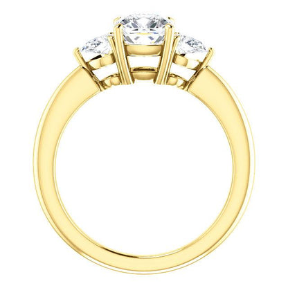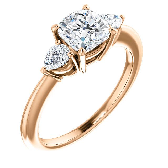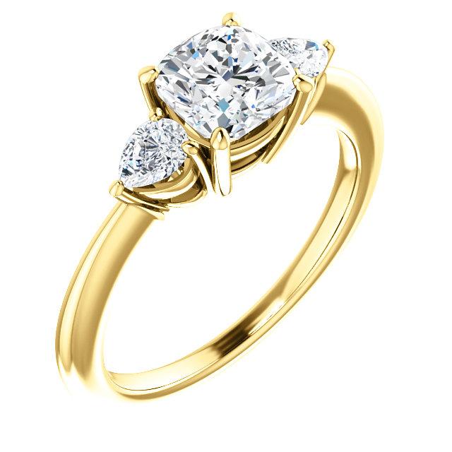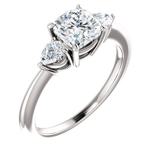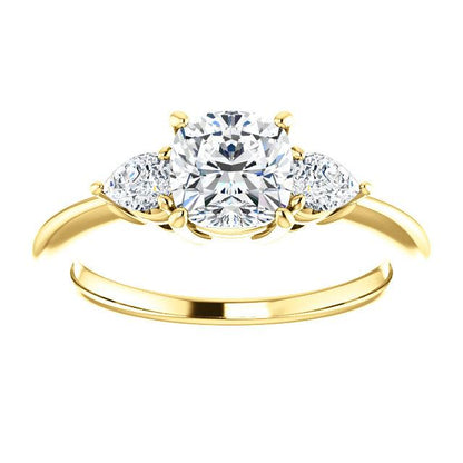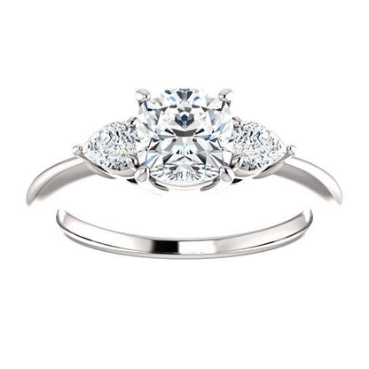 Cushion Tri -Stone Style Pear Accent Engagement Ring