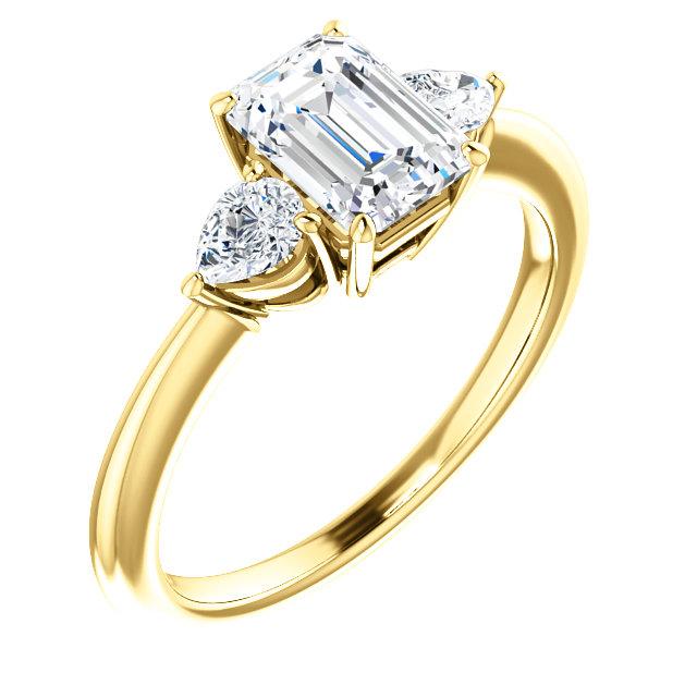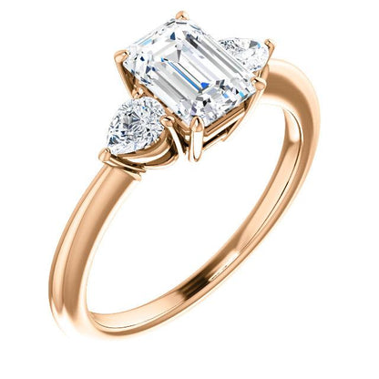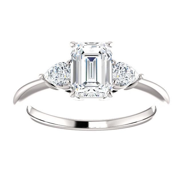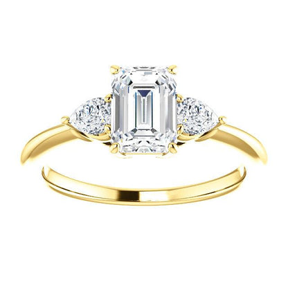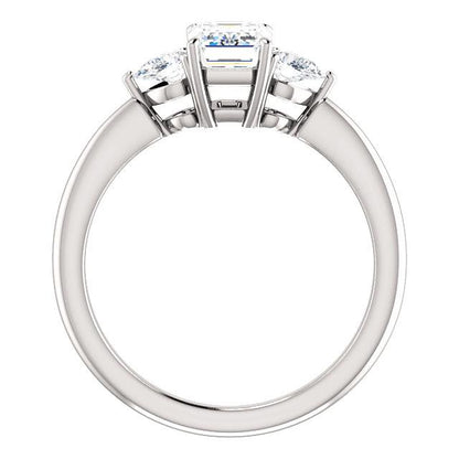 Emerald Tri -Stone Style Pear Accent Engagement Ring